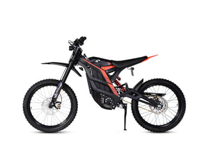 The Falcon Pro is a high-performance electric dirt bike featuring a range of up to 75 miles and a top speed of 53 mph. It is equipped with a Fastace 2.0 Fork for a smooth ride.