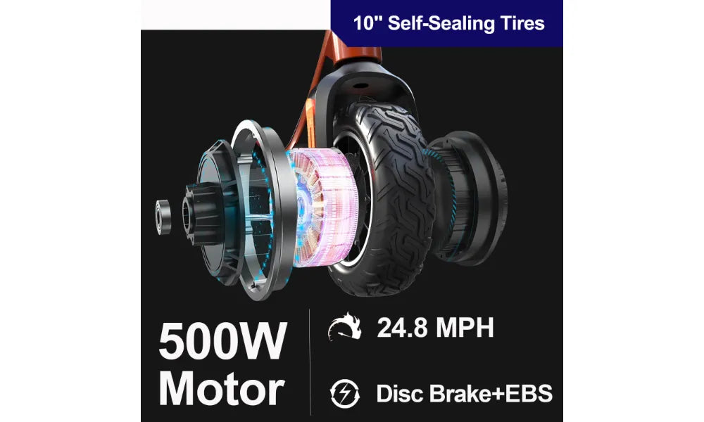 - 10” vacuum self-sealing tires with puncture-resistant coating