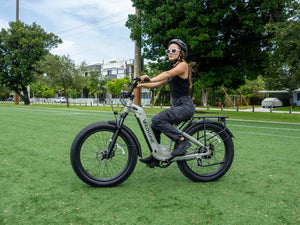 The step-through frame offers effortless mounting, supporting riders up to 300 lbs. Fat 4" tires ensure smooth, stable rides across any surface.